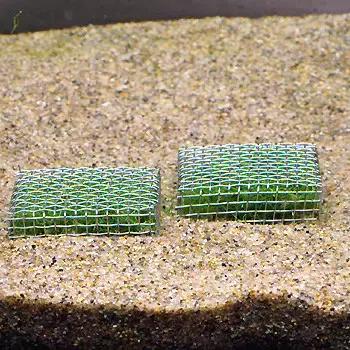 裝好草的網(wǎng)片,放進(jìn)魚缸內(nèi)(草在下網(wǎng)在上),最好能擺放整齊(小編有點(diǎn)強(qiáng)迫癥。。。)